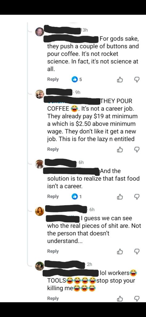 Supporting the strike costs you nothing but a temporary detour from your usual drink. Nobody is asking you to storm the gates, pick up a sign, or overthrow capitalism with a latte in hand. They’re asking for empathy. They’re asking for safety. They’re asking to not be treated like disposable appliances.