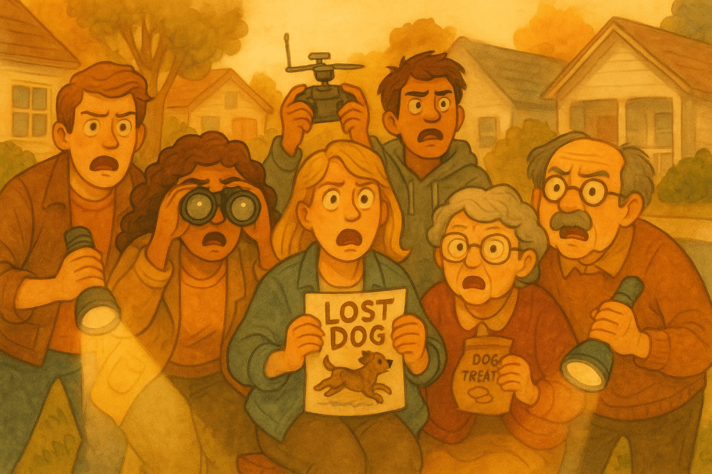This wasn’t a search party. This was thirty adults LARPing “CSI: Pet Edition.”