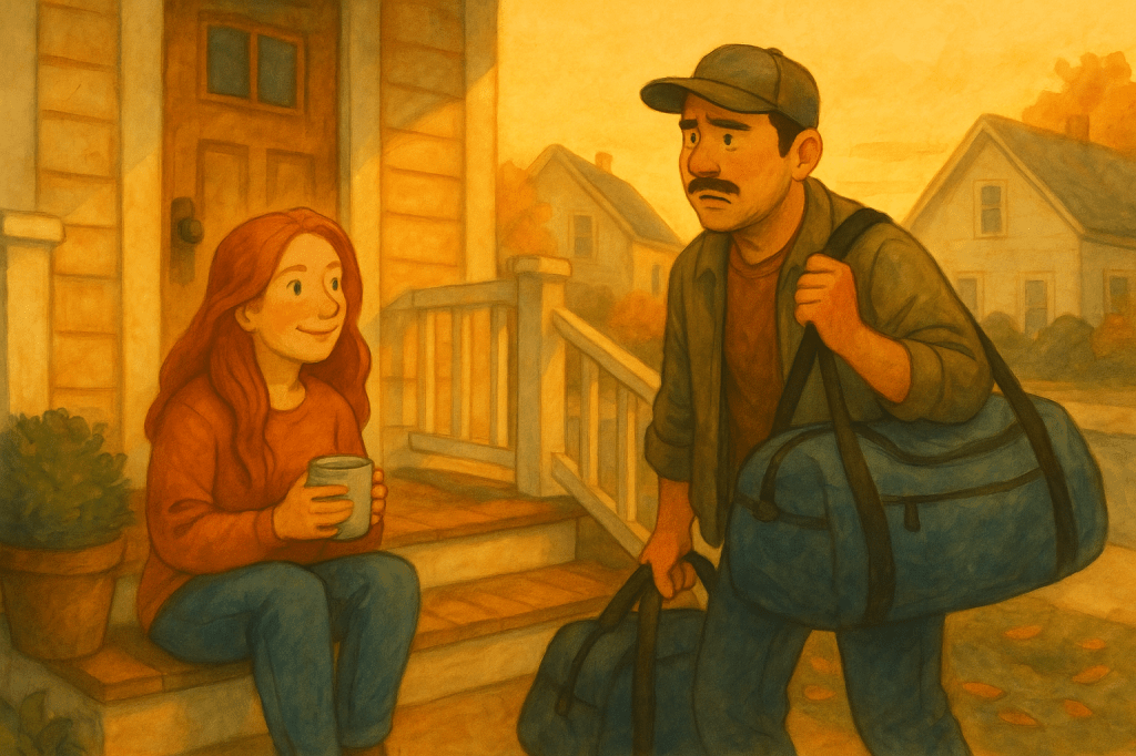 Mornings on the Magnolia Heights porch are usually suspiciously peaceful. The kind of peaceful where the sunrise looks like it’s trying too hard, and the air feels like it’s hiding something. I was out there with my coffee, enjoying the temporary illusion of calm, when Manny came trudging up the walkway with a duffel bag big enough to smuggle a grown man with second thoughts.