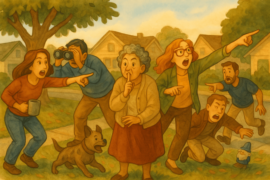 But that did not stop the crowd. They took off like they’d trained their whole lives for this exact moment. One man vaulted a hedge. Someone screamed in a pitch only dogs can hear. Another neighbor tripped over a gnome and apologized to it.